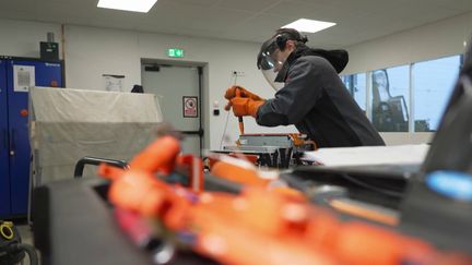 Les garages réservés à l’entretien des véhicules électriques commencent à voir le jour en France. Reportage près de Nantes (Loire-Atlantique), dans l’un de ces ateliers.