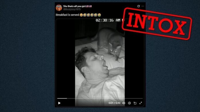 Une vidéo publiée sur TikTok, très virale, prétend montrer un enregistrement de vidéosurveillance dans lequel un chat déposerait une souris dans la bouche de son maître endormi. En réalité, cette vidéo a été créée à l’aide d’une intelligence artificielle de nouvelle génération, possiblement Sora 2.