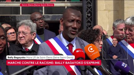 VIDEO. Au rassemblement citoyen contre le racisme, à Saint-Denis, “nous venons dire avec fermeté notre attachement viscéral aux valeurs de la République”, lance Bally Bagayoko, nouveau maire LFI de la ville